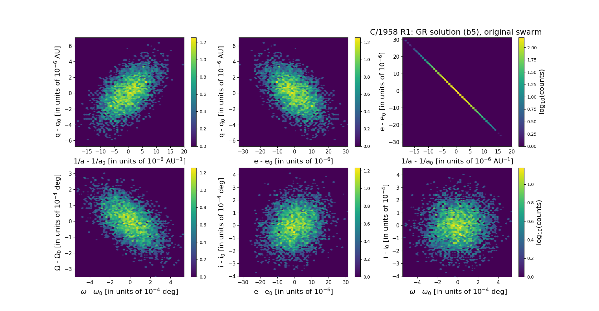 Comet had its closest approach to the Earth on 19 September 1958 (1.92 au, at this moment comet was 2.74 au from the Sun) and 18 March 1959 (1.94 au, six days after its perihelion passage).The MPC cometary database presents GR orbit based of 85 positional observations (data arc: 1958 09 07 – 1960 04 21), however only 40 observations obtained in Flagstaff are available in the MPC (data arc: 1958 09 14 – 1960 04 21), and the JPL offers GR osculating orbit based on this data set. We additionally collected observations from Yerkes, McDonald and Skalnaté Pleso observatories published in literature, and orbits 'ba' (GR) and 'bn' (NG) are based on 95 positional measurements (data arc: 1958 09 12 – 1960 04 21). For comparison purposes, we also presented orbits (GR and NG) using only Flagstaff data set (this set gives notable better rms for both types of orbits).