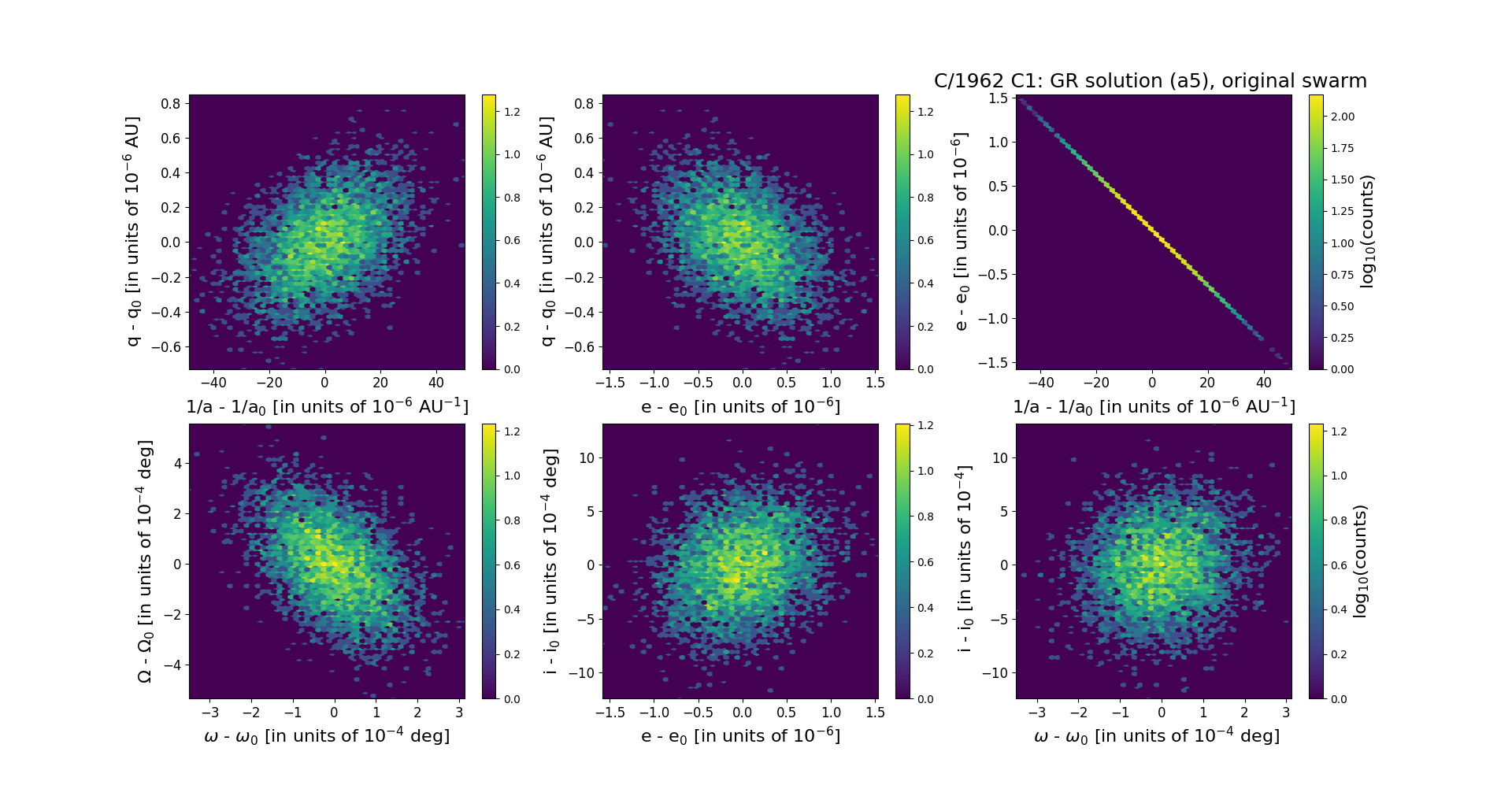 Based on the GR solutions, one might infer that this is an Oort spike comet. However, both NG solutions suggest significantly smaller original semi-major axes around 3,300 au ('bn' and 'fn').