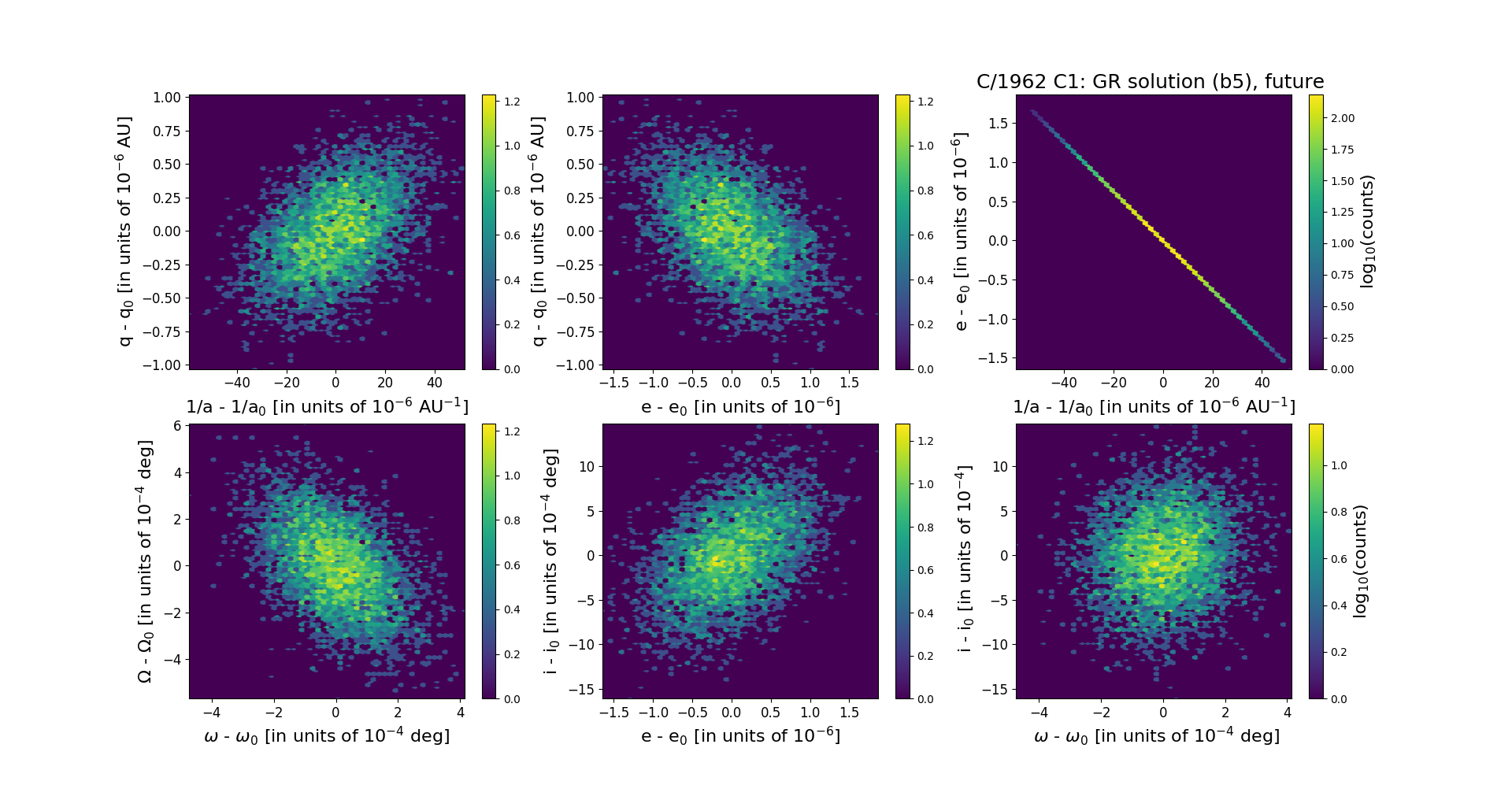 Based on the GR solutions, one might infer that this is an Oort spike comet. However, both NG solutions suggest significantly smaller original semi-major axes around 3,300 au ('bn' and 'fn').