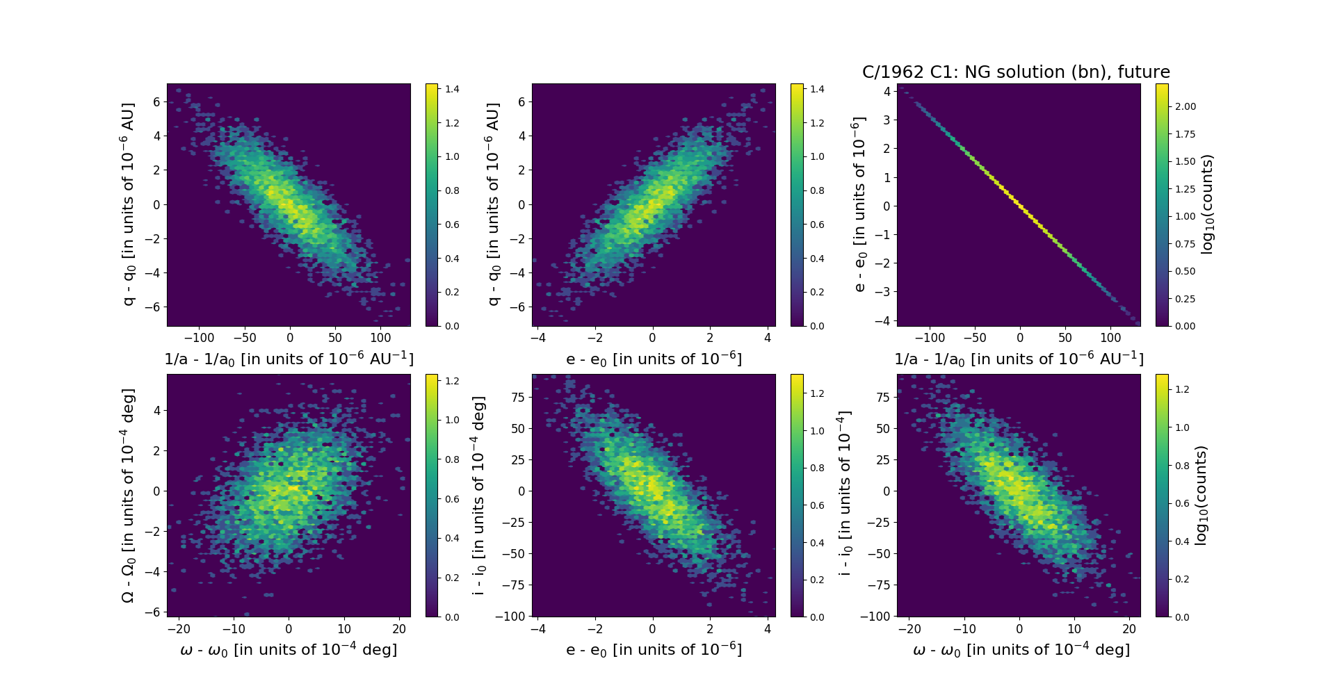 Based on the GR solutions, one might infer that this is an Oort spike comet. However, both NG solutions suggest significantly smaller original semi-major axes around 3,300 au ('bn' and 'fn').