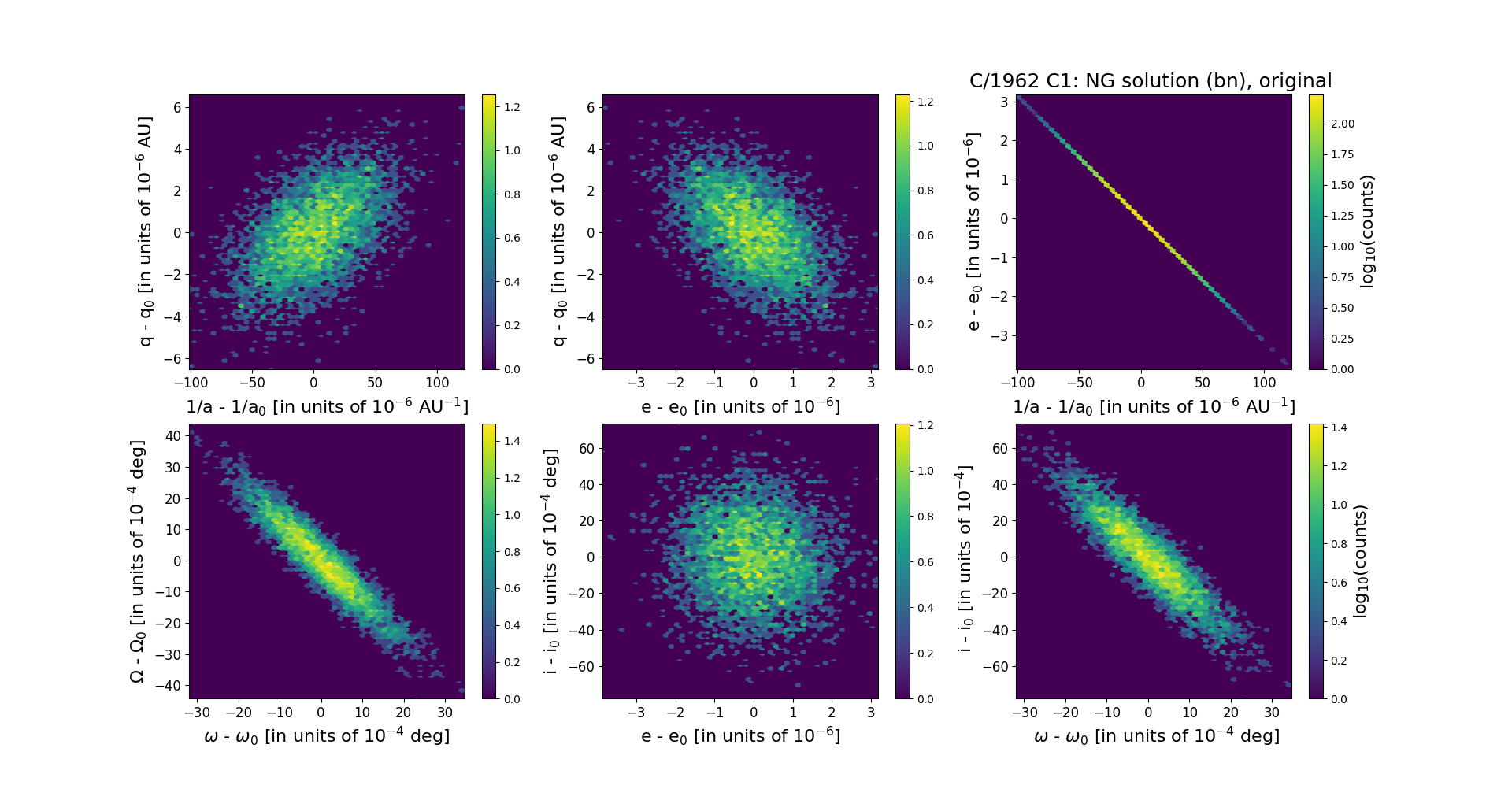 Based on the GR solutions, one might infer that this is an Oort spike comet. However, both NG solutions suggest significantly smaller original semi-major axes around 3,300 au ('bn' and 'fn').