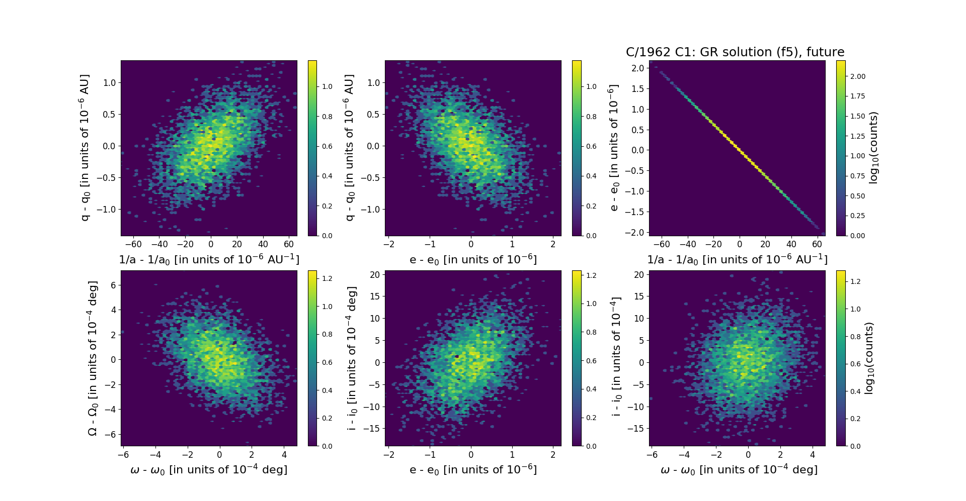 Based on the GR solutions, one might infer that this is an Oort spike comet. However, both NG solutions suggest significantly smaller original semi-major axes around 3,300 au ('bn' and 'fn').