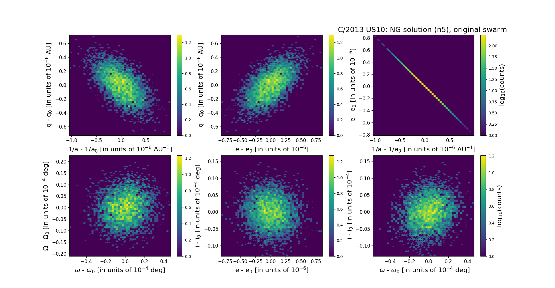 This is a comet with NG effects strongly manifested in positional data fitting. Solutions 'a5' and 'n5' (preferred) are based on data spanning over 4.3 yr in a range of heliocentric distances: 8.92 au – 0.823 au (perihelion) – 8.36 au.