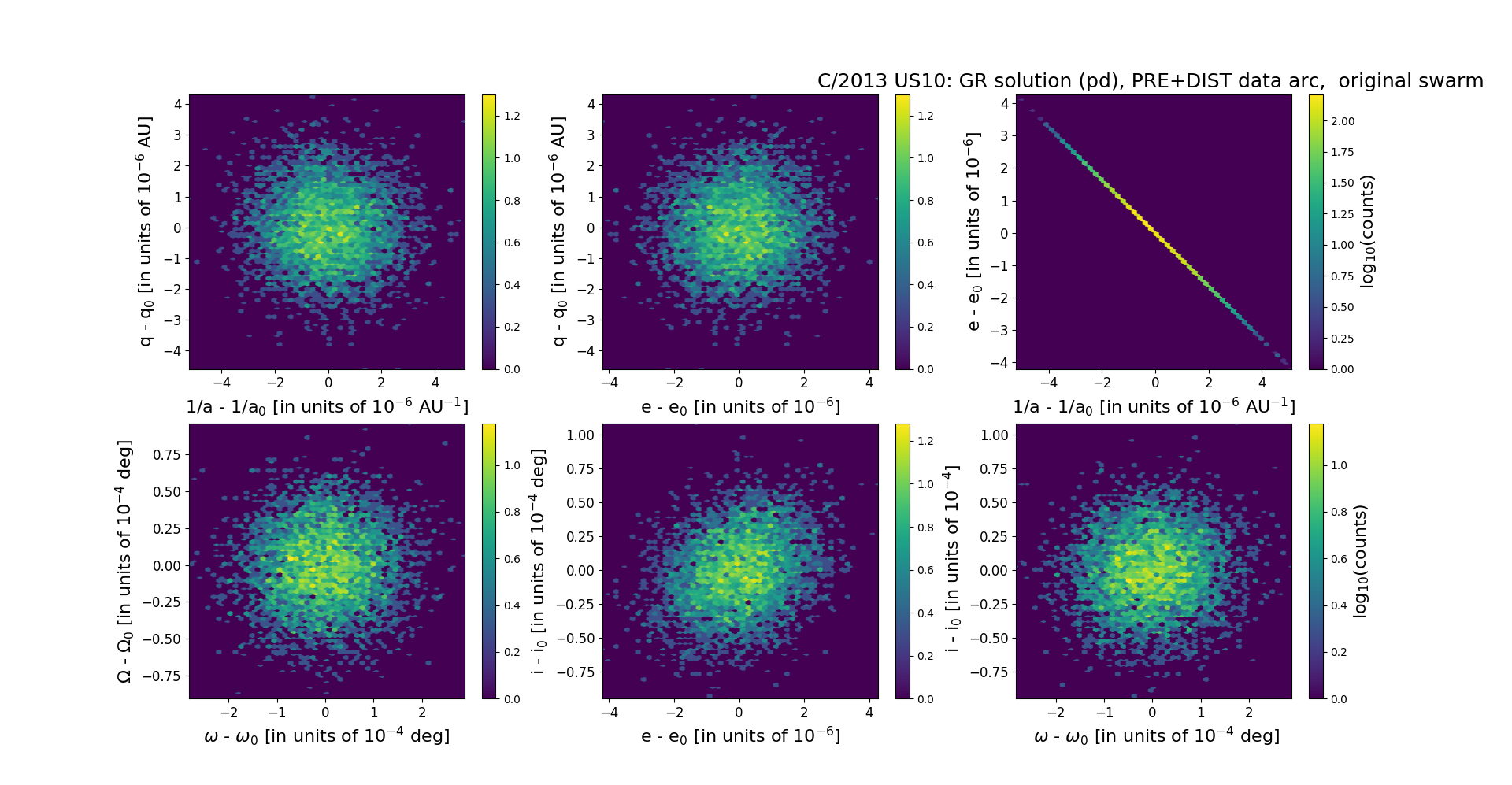 This Oort spike comet suffers moderate planetary perturbations while passing through the planetary system; these perturbations lead to escape the comet from the planetary zone on a hyperbolic orbit (see future barycentric orbits) in all orbital solutions given here except the NG solution based on pre-perihelion leg of orbit; however in this case the radial NG parameter is negative ('solution 'pn'). It is worth pointing out that the comet shows some tiny signs of the influence of NG effects on its orbit on the preperihelion leg at heliocentric distances larger than 3 au (solution 'pc').
