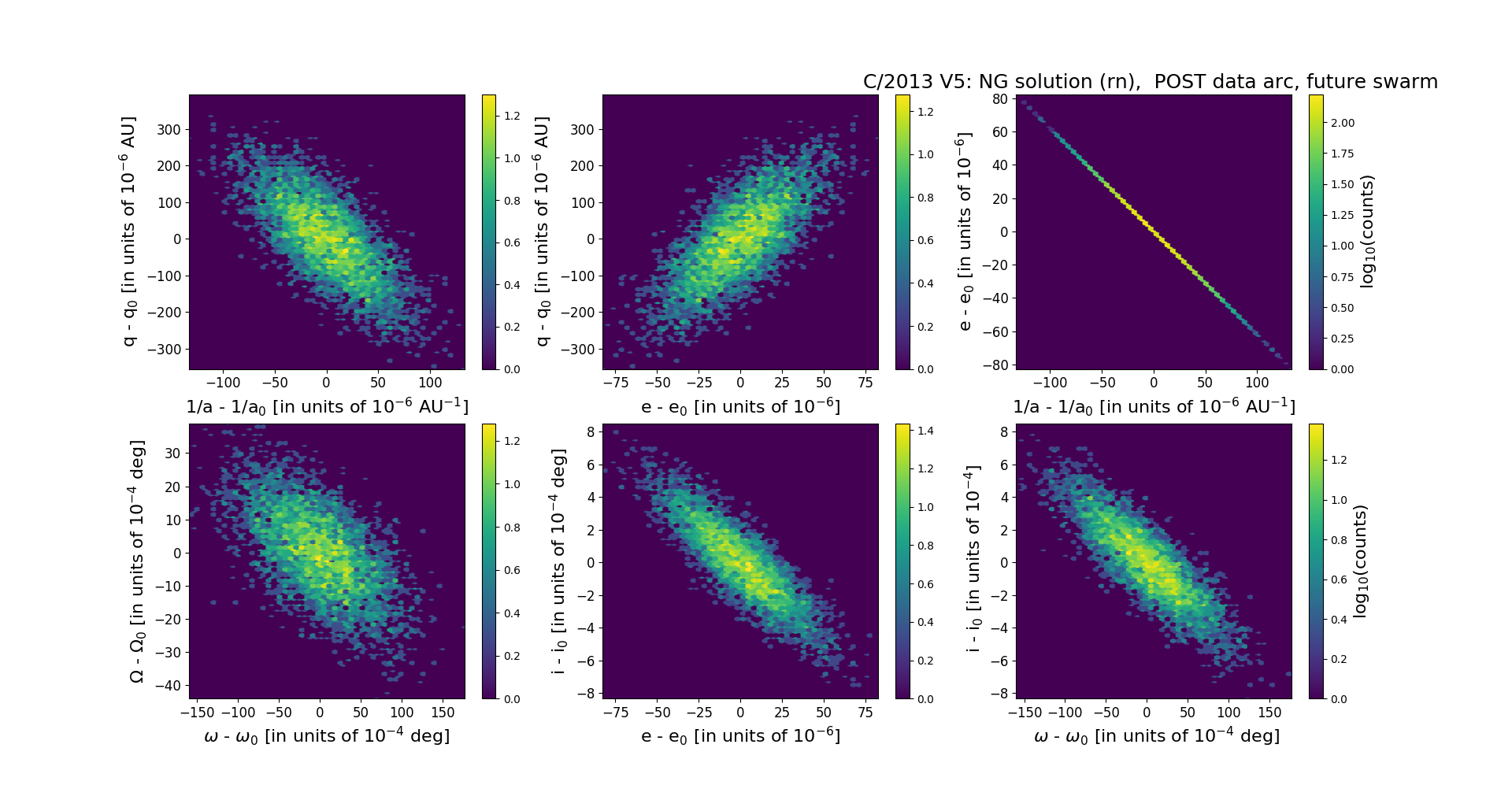This Oort spike comet suffers large planetary perturbations while passing through the planetary system. Assuming that the comet survived the perihelion passage these perturbations can lead to significantly more tight orbit with a semimajor axis of about 330 au (see future barycentric orbit for solution 'r1' or 'rn', that is based on postperihelion data arc).