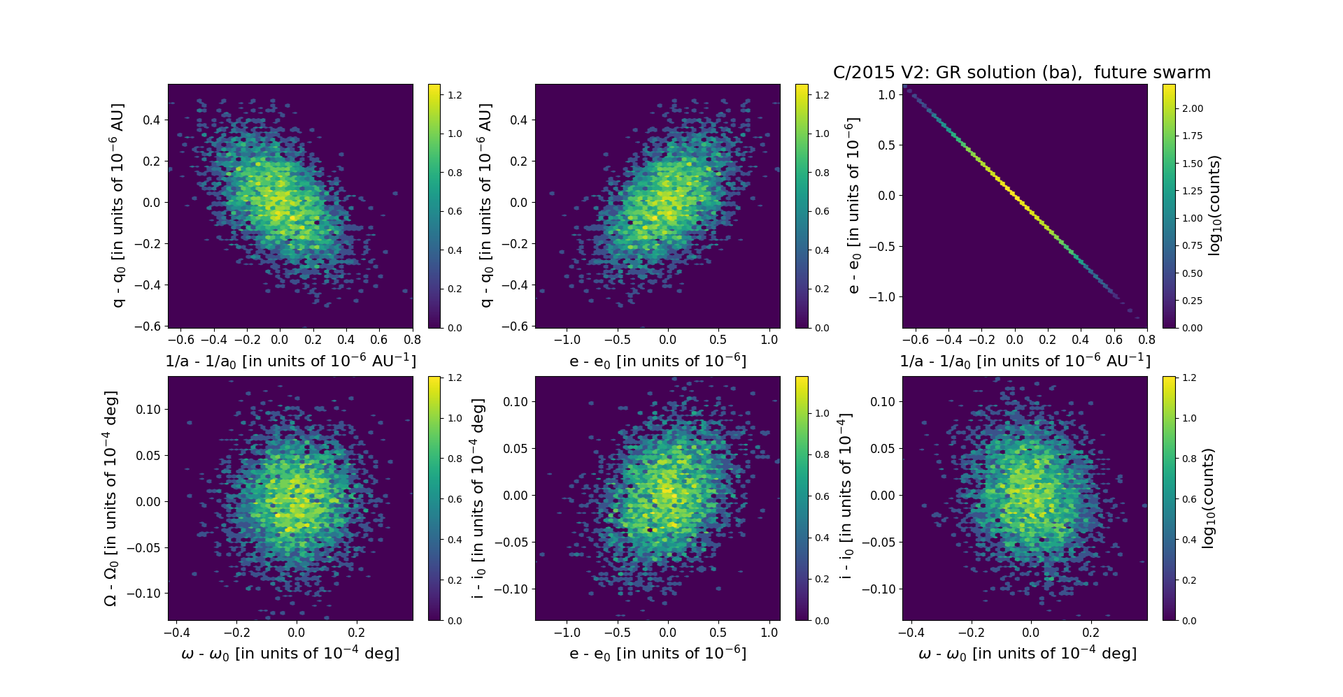 This Oort Cloud comet suffers moderate planetary perturbations while passing through the planetary system; these perturbations lead to escape the comet from the planetary zone on a hyperbolic orbit (see future barycentric orbits for all orbits given here).