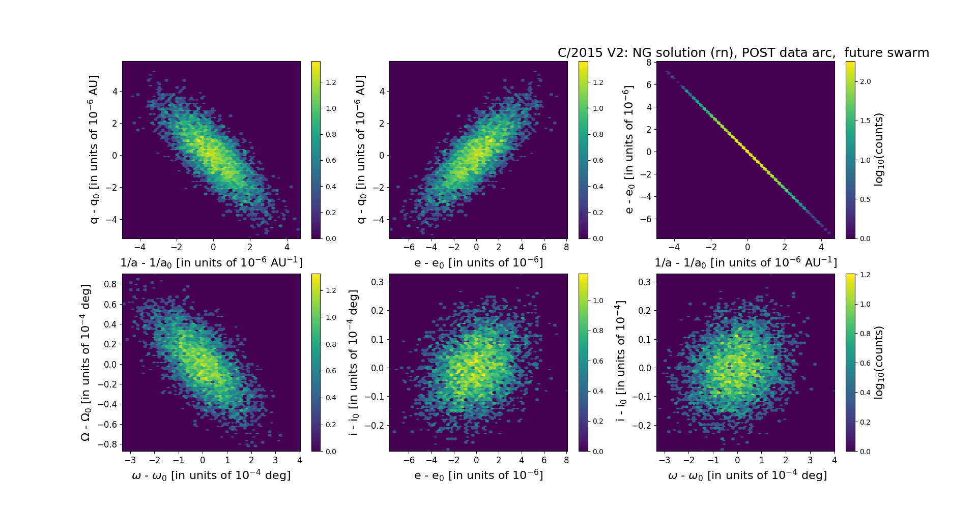 Comet C/2015 V2 was discovered on 3 November 2015 by Jess A. Johnson (Catalina Sky Survey), that is about a year and seven months before its perihelion passage. Next, 14 pre-discovery data were found going back to beginning of 2015 (January 11). Comet was observed extensively until 27 October 2019. C/2015 V2 had closest approach to the Earth on 4 June 2017 (0.811 au, about a week before the perihelion passage).