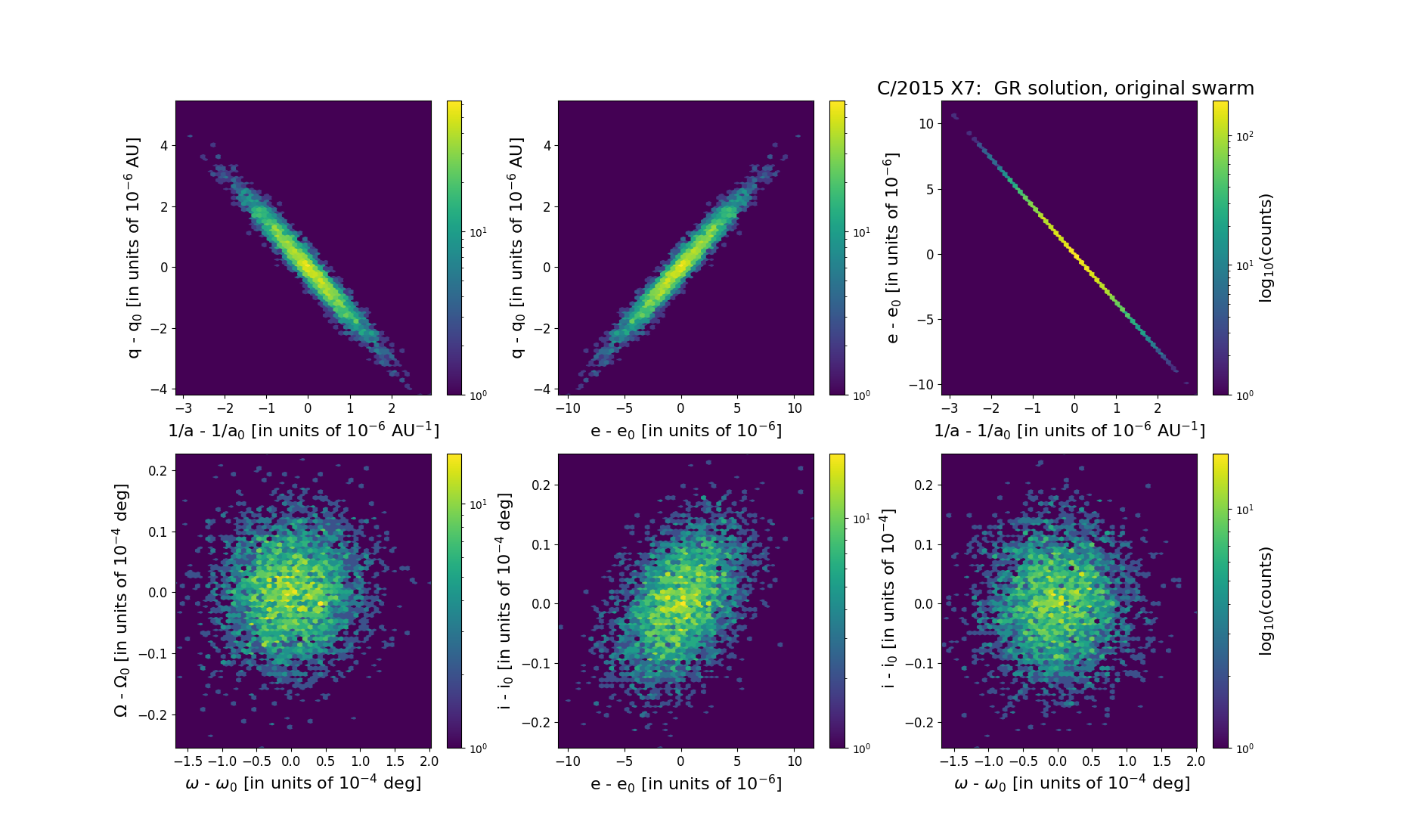 This Oort spike comet suffers small planetary perturbations during its passage through the planetary system that lead to a more tight future orbit with a semimajor axis of about 5,000 au (see future barycentric orbits).