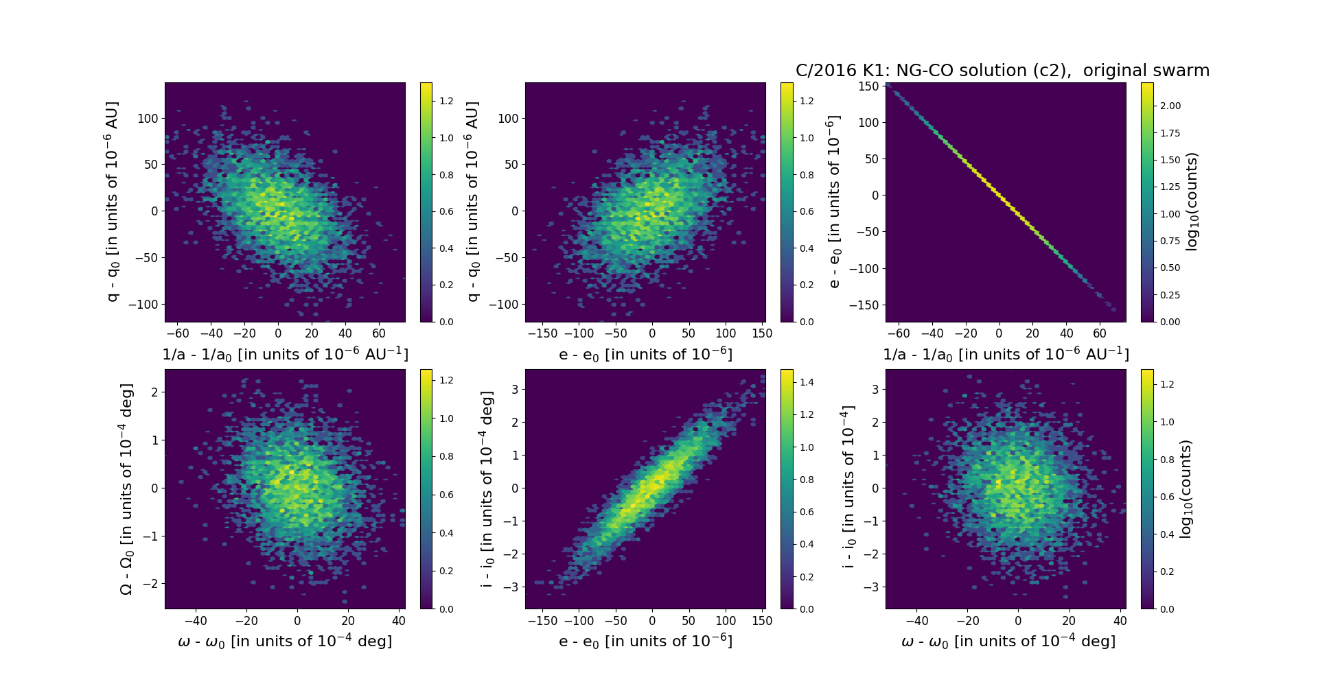This is a comet with NG effects determinable using positional data fitting. All solutions (GR and NG) are based on data spanning over 0.836 yr in a range of heliocentric distances: 2.34 au – 2.292 au (perihelion) – 3.64 au.