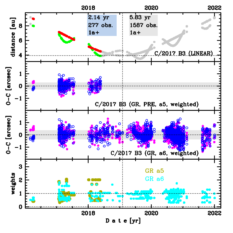 Preferred NGnbsp;solution given here is based on data arc spanning over 5.83nbsp;yr in a range of heliocentric distances: 9.16 au – 3.92 au (perihelion) – 9.15 au.