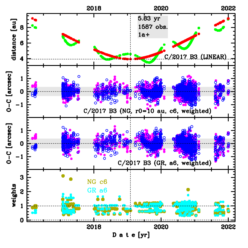 Preferred NGnbsp;solution given here is based on data arc spanning over 5.83nbsp;yr in a range of heliocentric distances: 9.16 au – 3.92 au (perihelion) – 9.15 au.