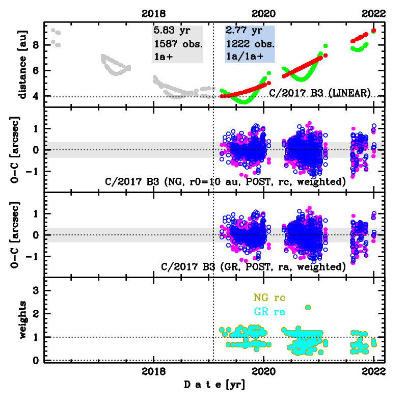 Preferred NGnbsp;solution given here is based on data arc spanning over 5.83nbsp;yr in a range of heliocentric distances: 9.16 au – 3.92 au (perihelion) – 9.15 au.