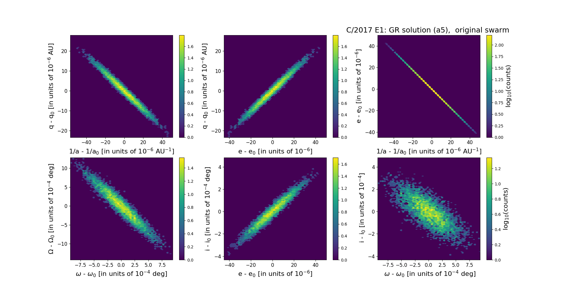 Only GR orbit is possible to obtain. GR solution given here is based on data spanning over 0.318 yr in a range of heliocentric distances: 1.15 au – 0.901 au (perihelion) – 1.59 au.