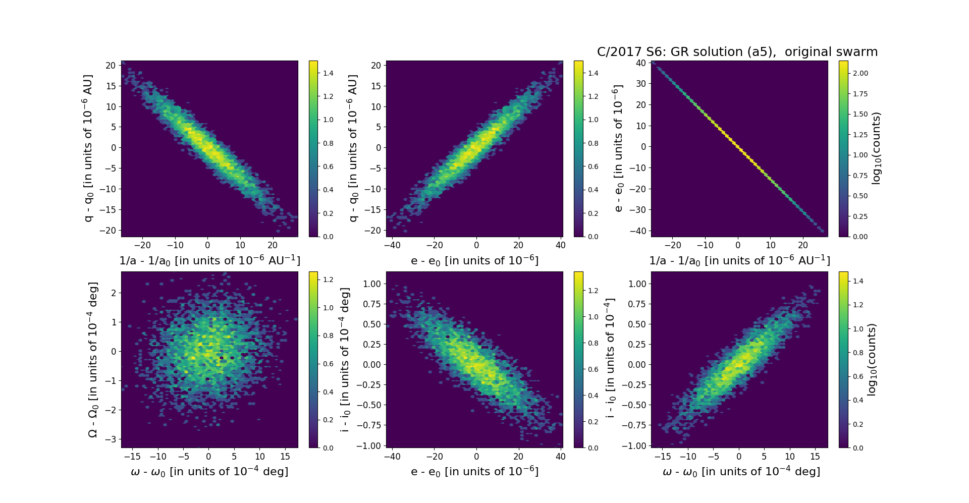 Only GR orbit is possible to obtain. GR solution 'a5' is based on data spanning over 0.934 yr in a range of heliocentric distances from 4.67 au to 1.61 au along pre-peperihelion orbital leg whereas 'p2' is based on shorter data arc spanning over 0.79 yr to a heliocentric distance of 1.95 au.