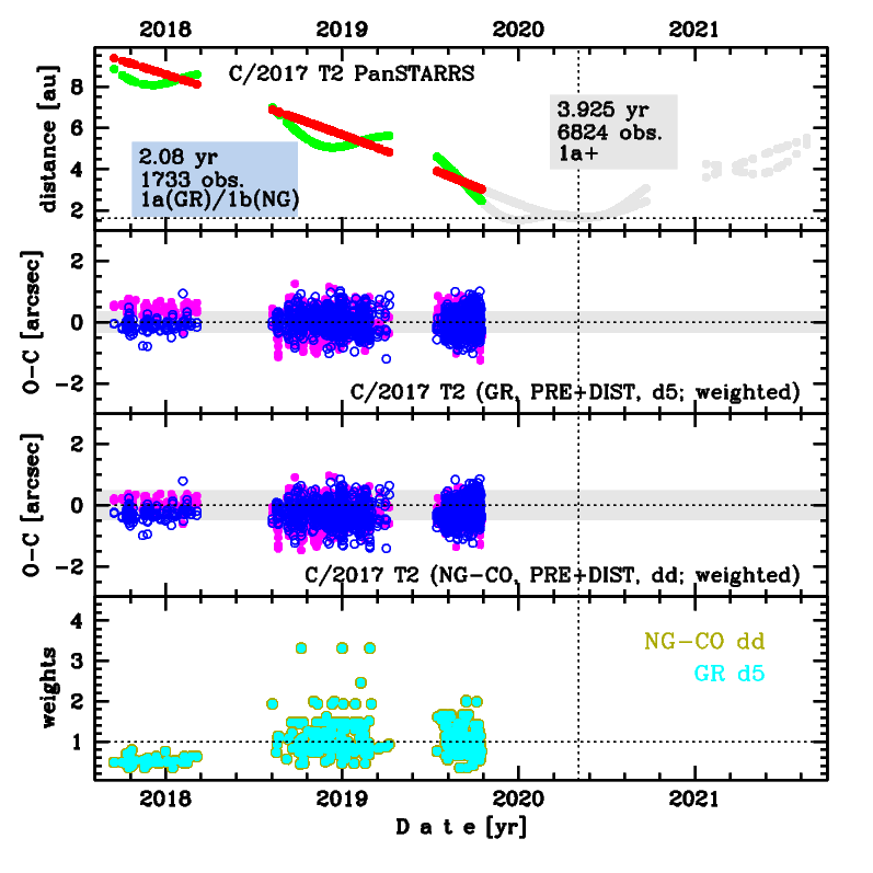 This is a comet with NG effects strongly manifested in positional data fitting and during GR orbit determination systematically small weights were obtained for post-perihelion observations since 2021 (last opposition). GR  (solution 'ba') and NG (solutions 'en' and 'et' – asymmetric g(r)-function) orbits are based on data spanning over 3.925 yr in a range of heliocentric distances: 9.38 au – 1.615 au (perihelion) – 5.50 au. NG solution 'et' is given as preferred orbit; however still trend in [O-C] are visible for this orbit (see [O-C] picture). It is worth mentioning that solution 'et' is very similar in NG parameters and orbital elements to JPL's NG solution based on the same data arc (with the norm. resid. RMS of 0.504 arcsec; as in January 2025). Additionally, we suggest NG solutions 'pn' (based on the pre-perihelion orbital leg) or 'dd' (based on the pre-perihelion orbital leg up to heliocentric distance of 3.01 au) to be alsoused for for the study of the origin of this comet.