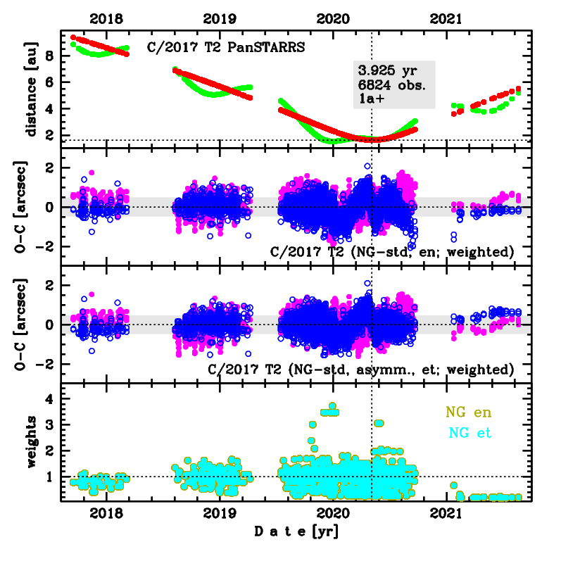 This is a comet with NG effects strongly manifested in positional data fitting and during GR orbit determination systematically small weights were obtained for post-perihelion observations since 2021 (last opposition). GR  (solution 'ba') and NG (solutions 'en' and 'et' – asymmetric g(r)-function) orbits are based on data spanning over 3.925 yr in a range of heliocentric distances: 9.38 au – 1.615 au (perihelion) – 5.50 au. NG solution 'et' is given as preferred orbit; however still trend in [O-C] are visible for this orbit (see [O-C] picture). It is worth mentioning that solution 'et' is very similar in NG parameters and orbital elements to JPL's NG solution based on the same data arc (with the norm. resid. RMS of 0.504 arcsec; as in January 2025). Additionally, we suggest NG solutions 'pn' (based on the pre-perihelion orbital leg) or 'dd' (based on the pre-perihelion orbital leg up to heliocentric distance of 3.01 au) to be alsoused for for the study of the origin of this comet.