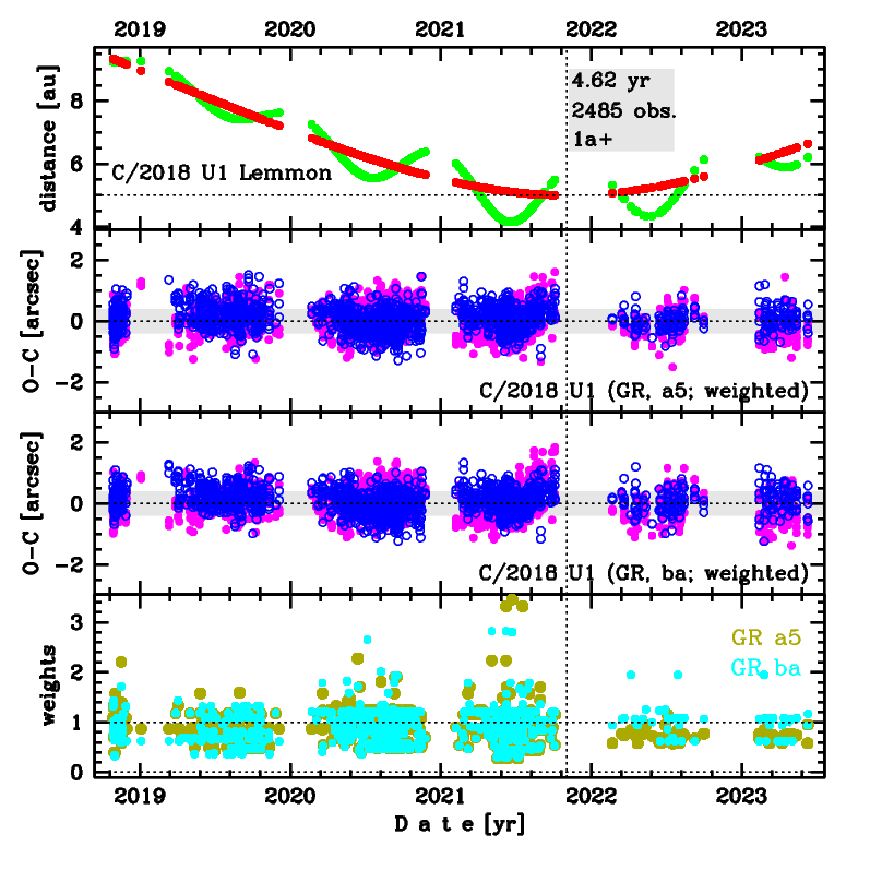 Comet C/2018 U1 was discovered on 27 October 2019, almost four years before its perihelion passage, and was observed until the mid-2023 (as in February 2025).