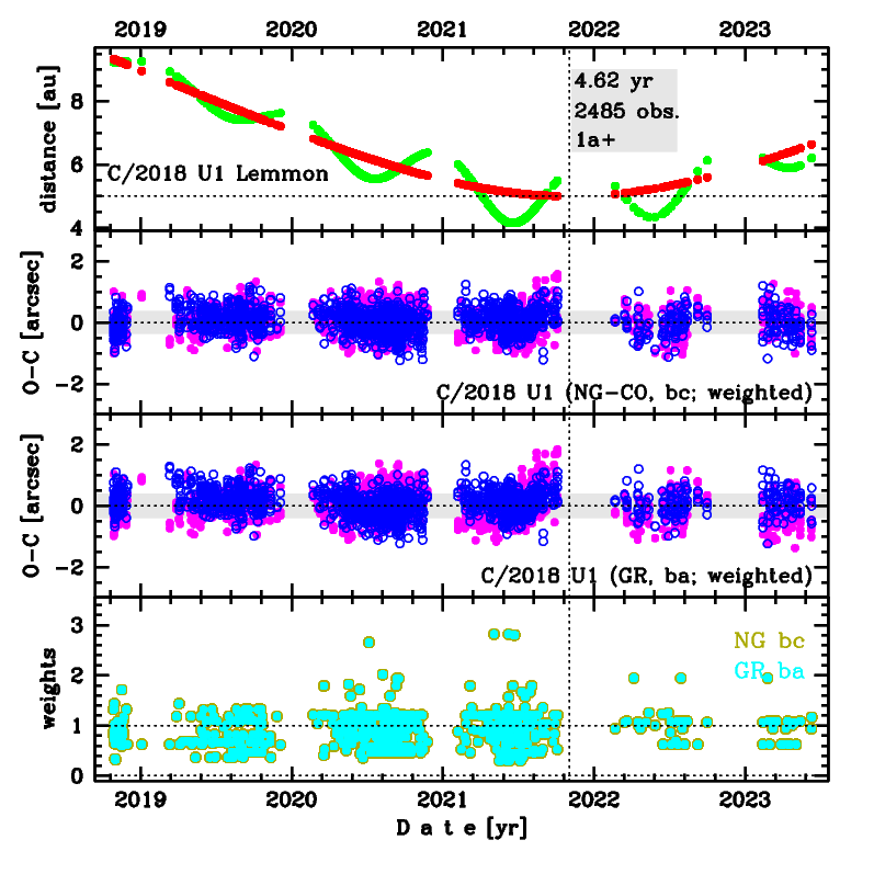 The preferred NG-solution given here is based on data spanning over 4.62 yr in a range of heliocentric distances 9.33 au – 5.00 au (perihelion) – 6.64 au