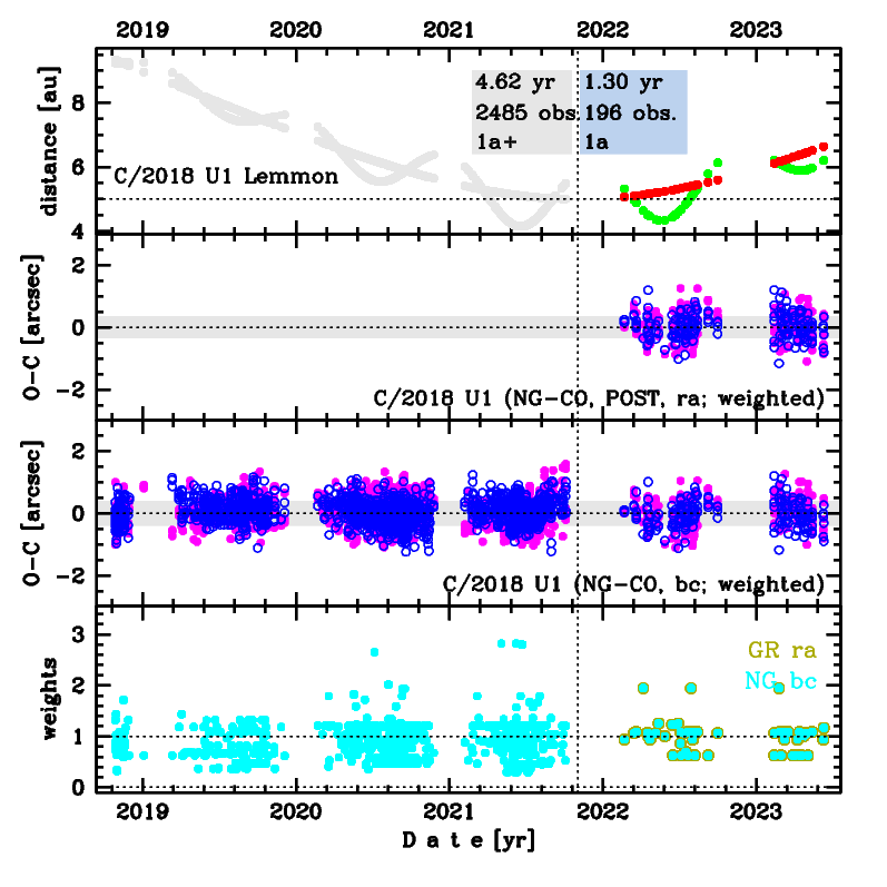 Comet C/2018 U1 was discovered on 27 October 2019, almost four years before its perihelion passage, and was observed until the mid-2023 (as in February 2025).