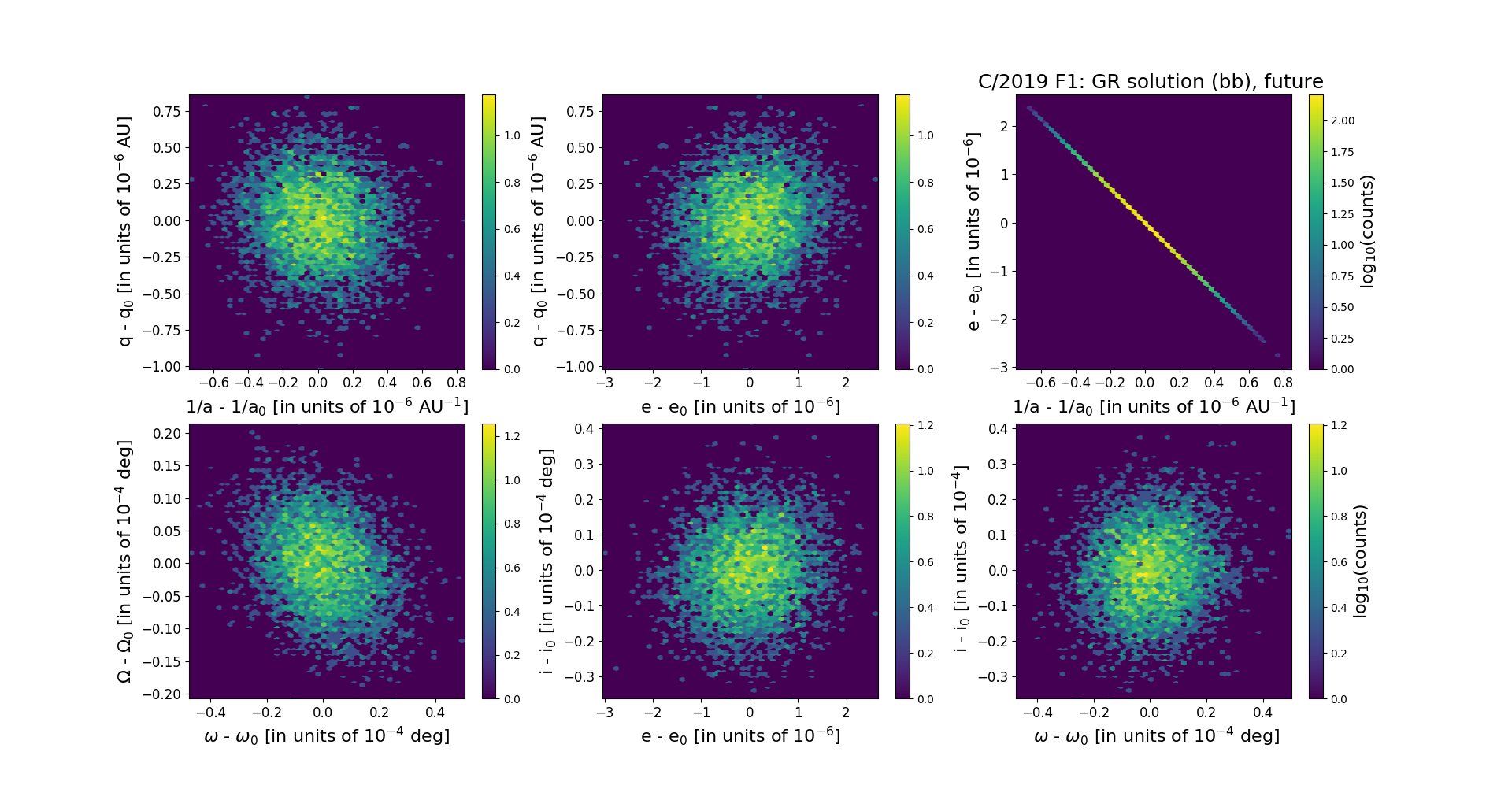 This Oort spike comet suffers small planetary perturbations during its passage through the planetary system that lead to a more tight future orbit with semimajor axis of about 5,900 au (see future barycentric orbits).