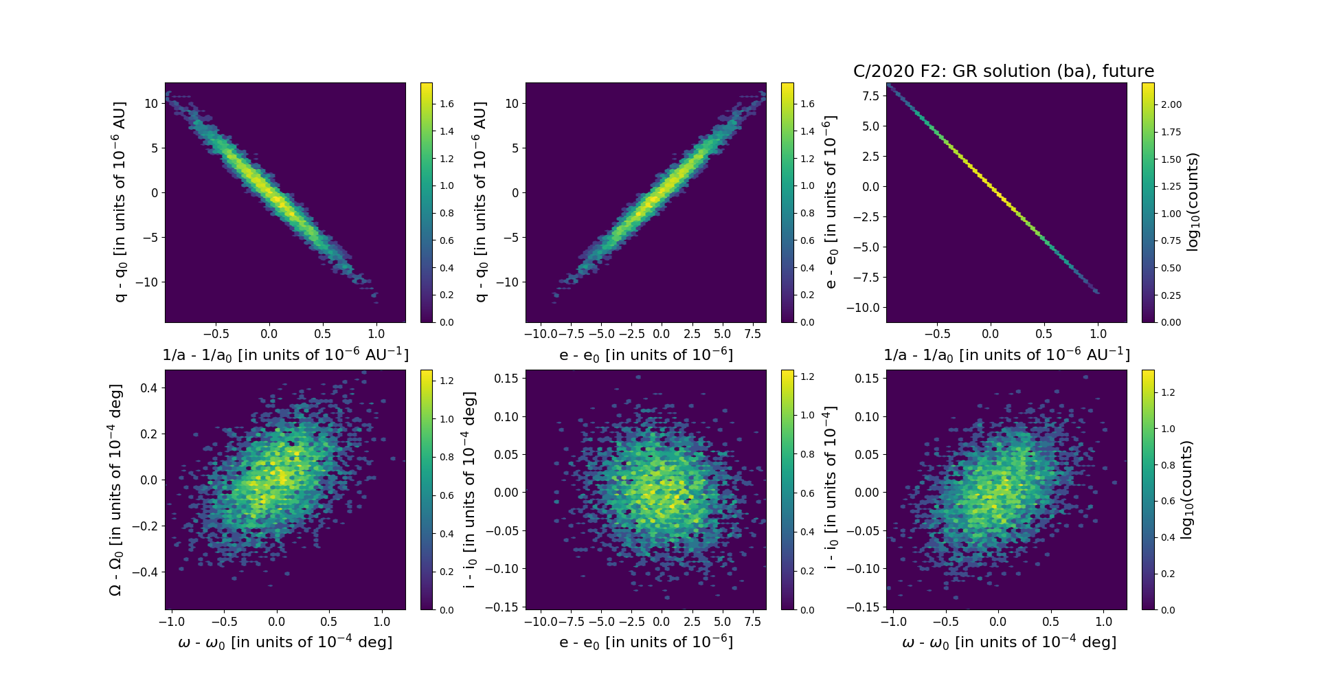 This Oort spike comet suffers tiny planetary perturbations during its passage through the planetary system that lead to a bit less tight future orbit inside the Oort spike zone (see future barycentric orbits).