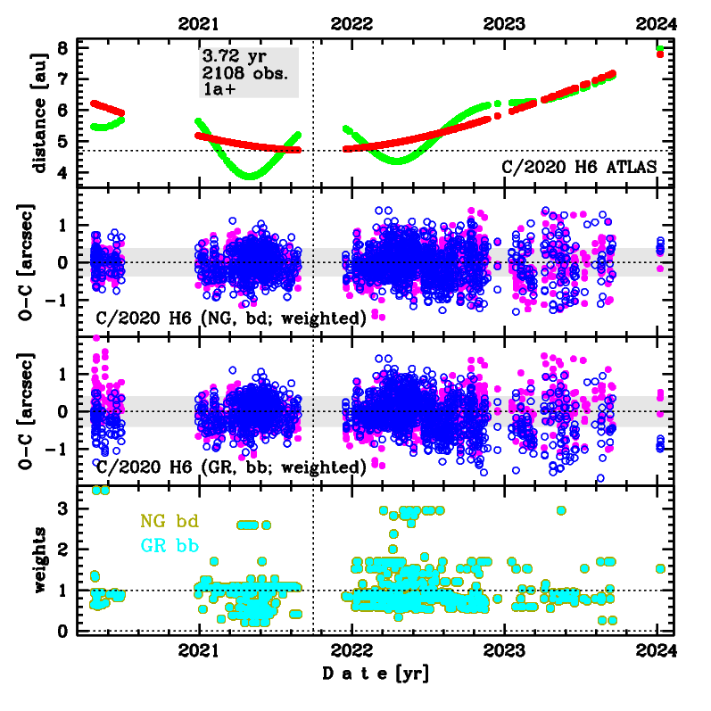 Comet C/2020 H6 was discovered on 22 April 2020, about 1.3 yr before its perihelion passage. This comet was observed until 8 January 2024 (as in February 2025).