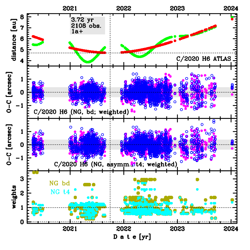 Comet C/2020 H6 was discovered on 22 April 2020, about 1.3 yr before its perihelion passage. This comet was observed until 8 January 2024 (as in February 2025).