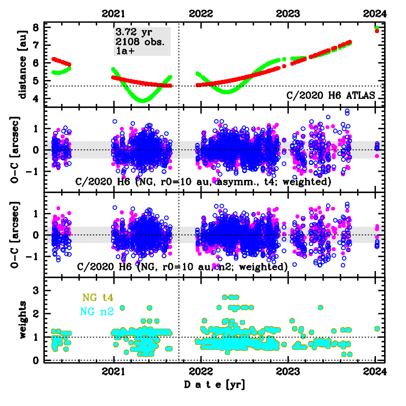 Comet C/2020 H6 was discovered on 22 April 2020, about 1.3 yr before its perihelion passage. This comet was observed until 8 January 2024 (as in February 2025).