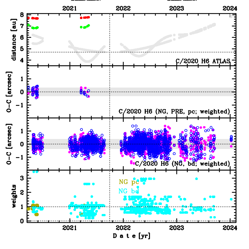 Comet C/2020 H6 was discovered on 22 April 2020, about 1.3 yr before its perihelion passage. This comet was observed until 8 January 2024 (as in February 2025).