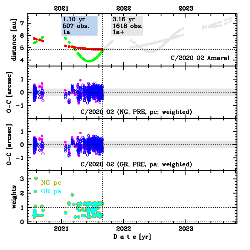 Currently, the preferred NG solution given here is based on data span over 3.16 yr in a range of heliocentric distances: 5.76 au – 4.86 au (perihelion) – 7.44 au.