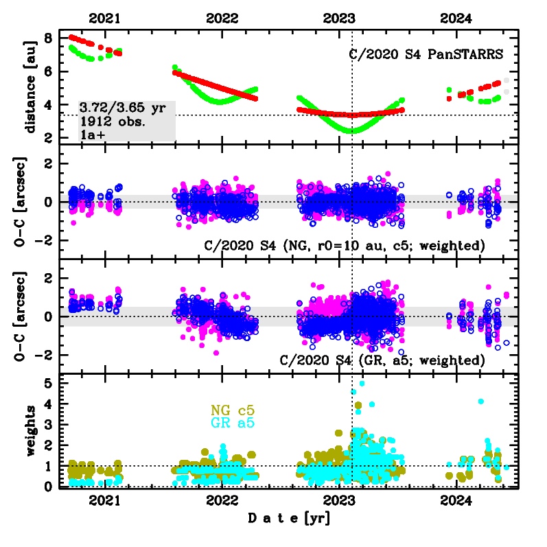 Comet C/2020 S4 was discovered on 16 September 2020, about 2.5 yr before its perihelion passage. This comet was observed until 5 June 2024 (as in February 2025).