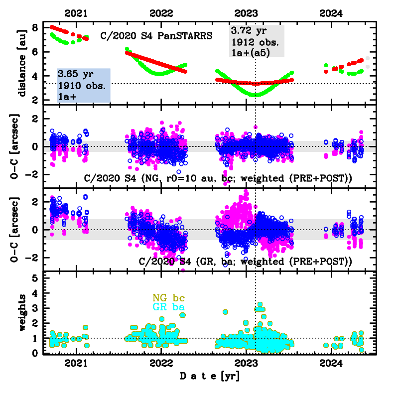 Comet C/2020 S4 was discovered on 16 September 2020, about 2.5 yr before its perihelion passage. This comet was observed until 5 June 2024 (as in February 2025).