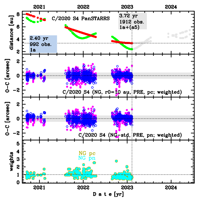 Comet C/2020 S4 was discovered on 16 September 2020, about 2.5 yr before its perihelion passage. This comet was observed until 5 June 2024 (as in February 2025).