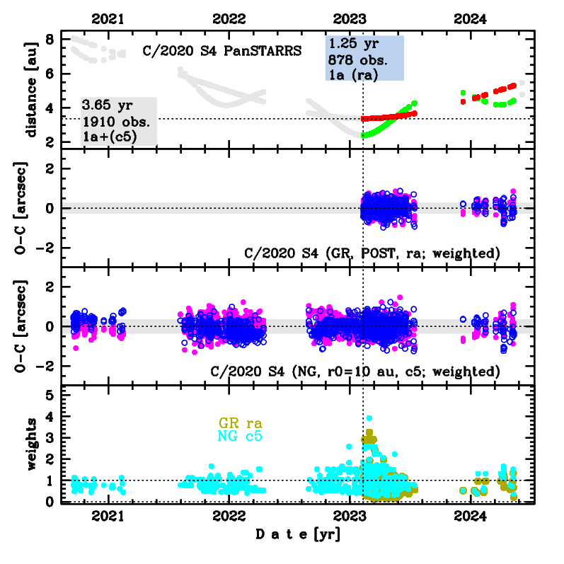 Comet C/2020 S4 was discovered on 16 September 2020, about 2.5 yr before its perihelion passage. This comet was observed until 5 June 2024 (as in February 2025).
