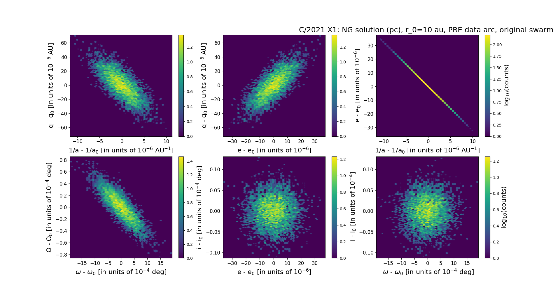 The preferred GR solution given here is based on data span over 6.09 yr in a range of heliocentric distances: 6.06 au – 3.23 au (perihelion) – 5.49 au. Some trends in [O-C] diagram are visible for GR orbit; however, NG solution based on the entire data arc results in negative radial NG parameter A1, so this solution is not given here.
