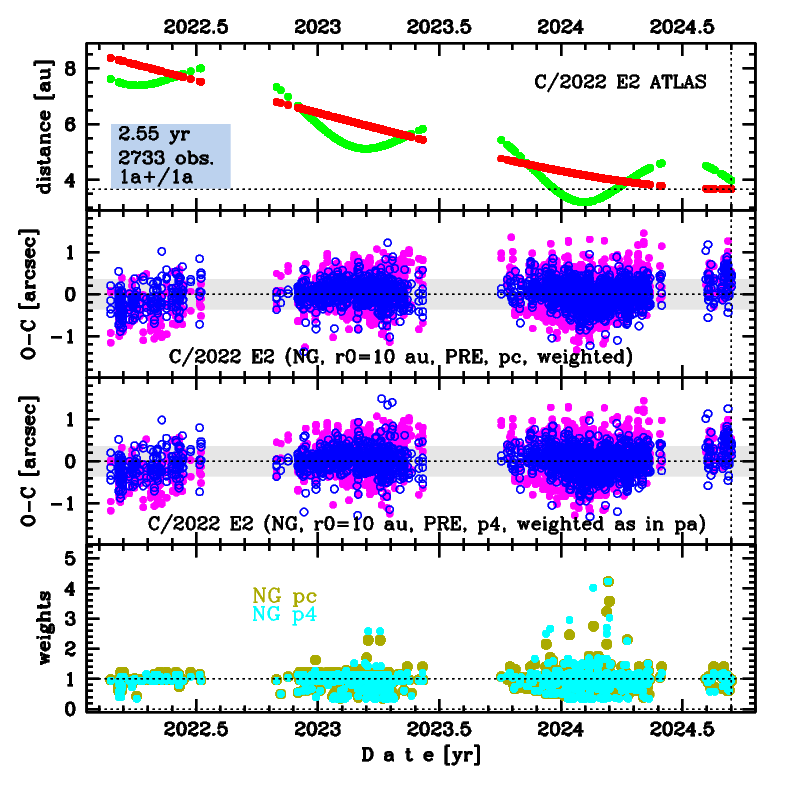Currently, the preferred NG solution given here is based on pre-perihelion data span over 2.55 yr in a range of heliocentric distances from 3.67 au to 2.03 au.