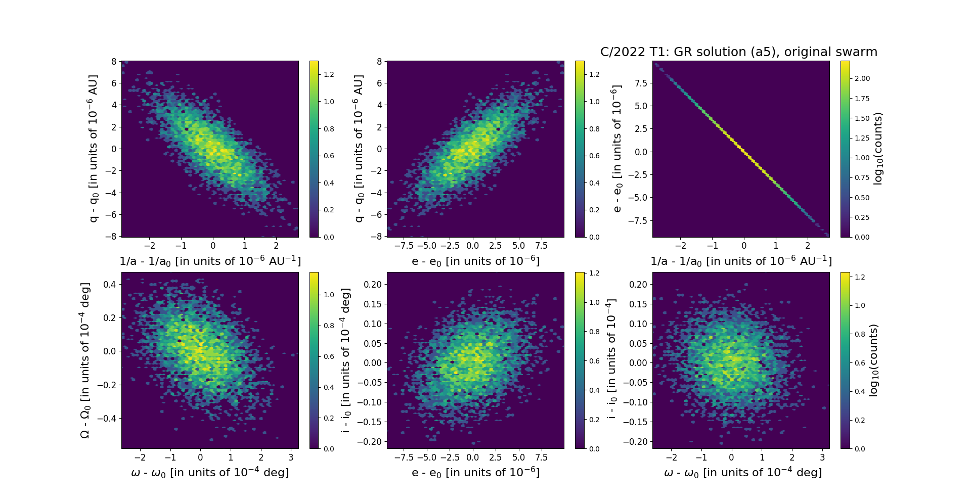 GR solution given here is based on data span over 1.77 yr in a range of heliocentric distances: 5.60 au – 3.44 au (perihelion) – 3.69 au.